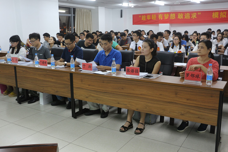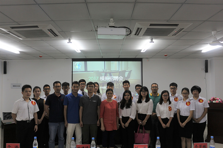 2017年5月19日晚7点30分,研发楼510灯火辉煌、人头涌动,350vip8888新葡的京集团模拟招聘会决赛战斗的号角即将吹响。出席本次活动的嘉宾有碧桂园人力资源部经理刘进、人力资源部高级主管乔芳琳,信息产业电子第十一研究院科技工程股份有限公司海南分公司副院长丁建峰、办公室主任张语径,恒大地产集团海南有限公司人力资源部人事专员于浩以及学院党委副书记罗邻球、就业辅导员詹达夫老师。
