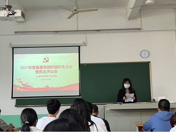 会议第一项,支部书记詹达夫代表第二学生党支部委员会作述职报告,汇报一年来党支部的建设情况。在学院党委的正确领导和关心下,第二学生党支部抓牢支部思想政治建设,针对“四史”学习“建党精神”学习、党的十九届六中全会重要精神开展多次全体规模的主题党日活动,切实加强和促进支部思想政治建设、组织建设、制度建设,努力打造学习型、服务型、创新型党支部。同时,也客观指出了支部自身建设还存在的问题和不足,比如支部学习和日常工作知行合一方面,办法不多、创新不够;支部实践性教育活动方面,开展形式不够丰富多样、覆盖面不足等,并提出了今后努力的方向和改进措施。