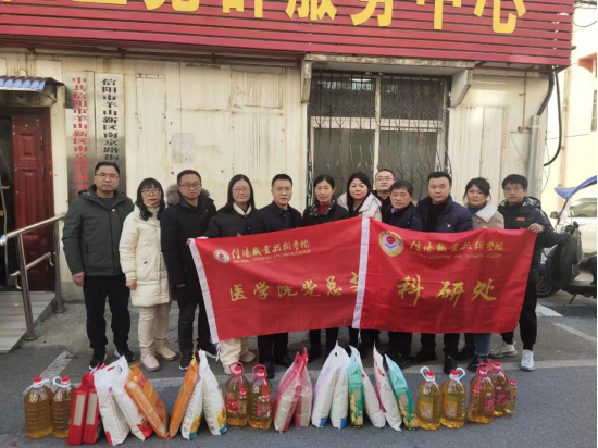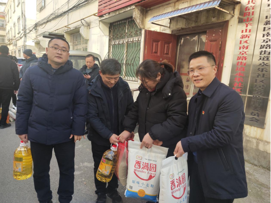 为使社区困难群众感受关怀、温暖过冬, 1月24日下午, Beat365官方网站党总支联合马克思主义学院党支部 、科研处党支部 、实验实训中心党支部共计十二名同志继续开展支部联支部活动,深入永乐社区对困难群众进行春节慰问。