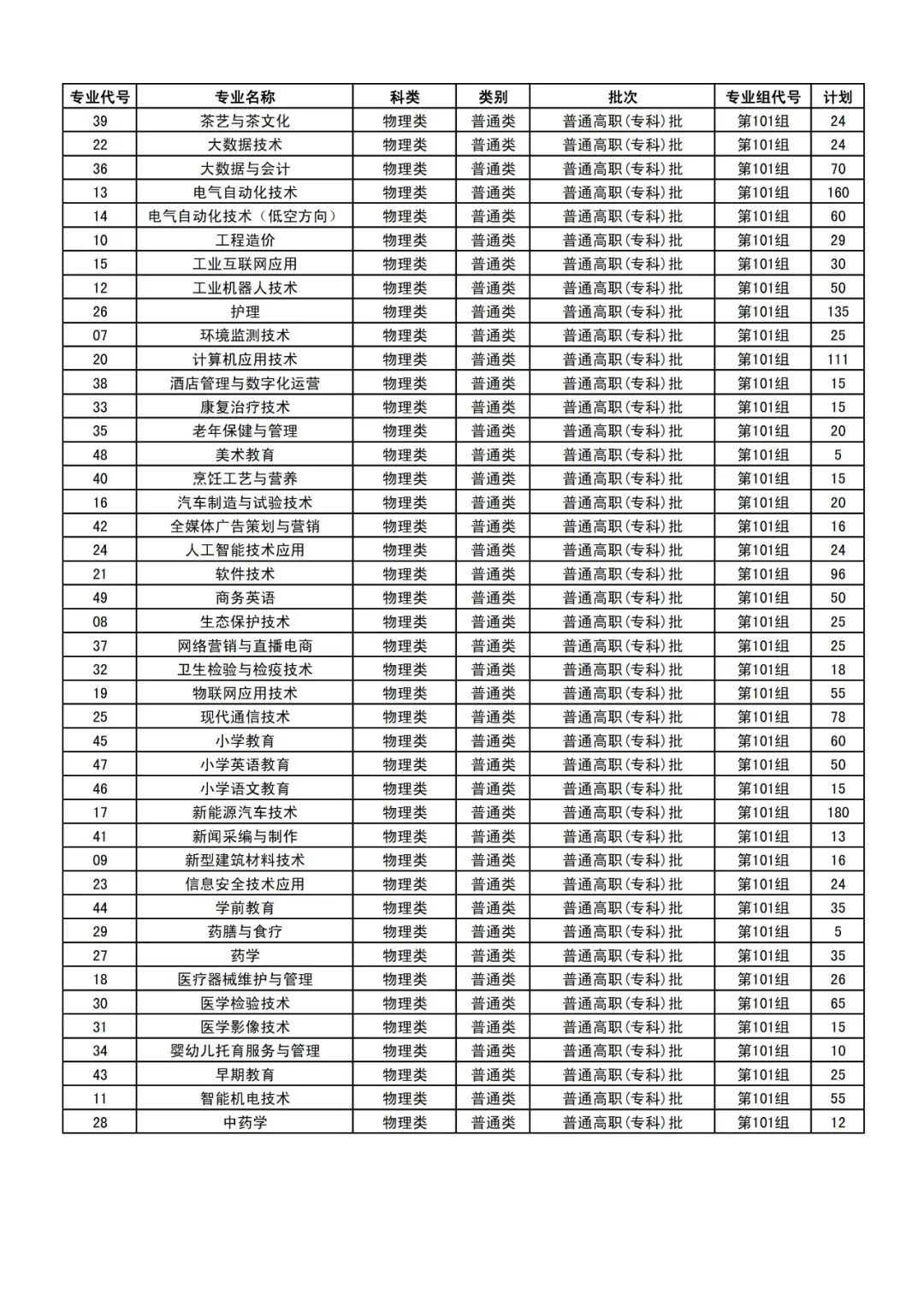 普通高职批(物理类)