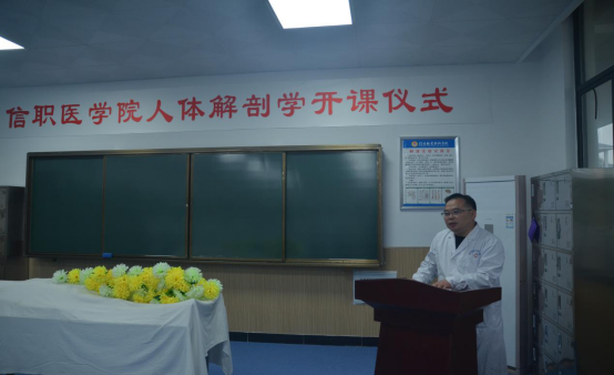 3月18日下午,Beat365官方网站院长易慧智、解剖教研室全体教师和临床医学专业20级新生代表齐聚1304教室,隆重举行了庄严肃穆的人体解剖学开课仪式,大家一起感恩大爱,致敬无言良师。仪式由解剖教研室主任曾永鸿主持。