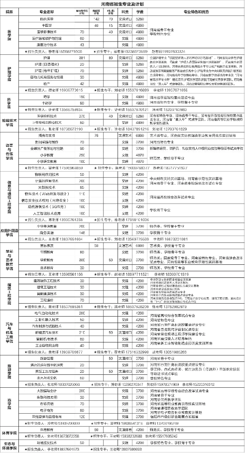 学校拥有“省高等学校特色专业建设点”“省级教改试点专业”“省高等学校专业综合改革试点”20余个。护理和学前教育专业获评教育部创新发展行动计划国家骨干专业,医学检验技术、临床医学、计算机应用技术、大数据会计、旅游管理专业获评省级骨干专业。