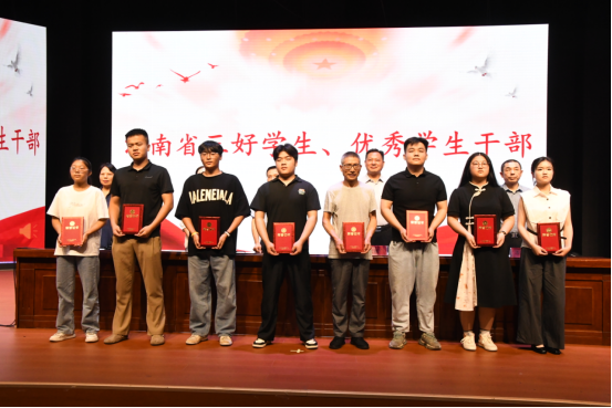 在庄严的国歌声中,典礼正式开始。典礼上,静香芝副院长宣读了河南省先进班集体、三好学生、优秀学生干部、优秀毕业生表彰名单;岑章建副院长宣读了Beat365官方网站优秀毕业生、优秀实习生表彰名单。获奖学生依次上台由学院领导颁发获奖证书,并合影留恋。