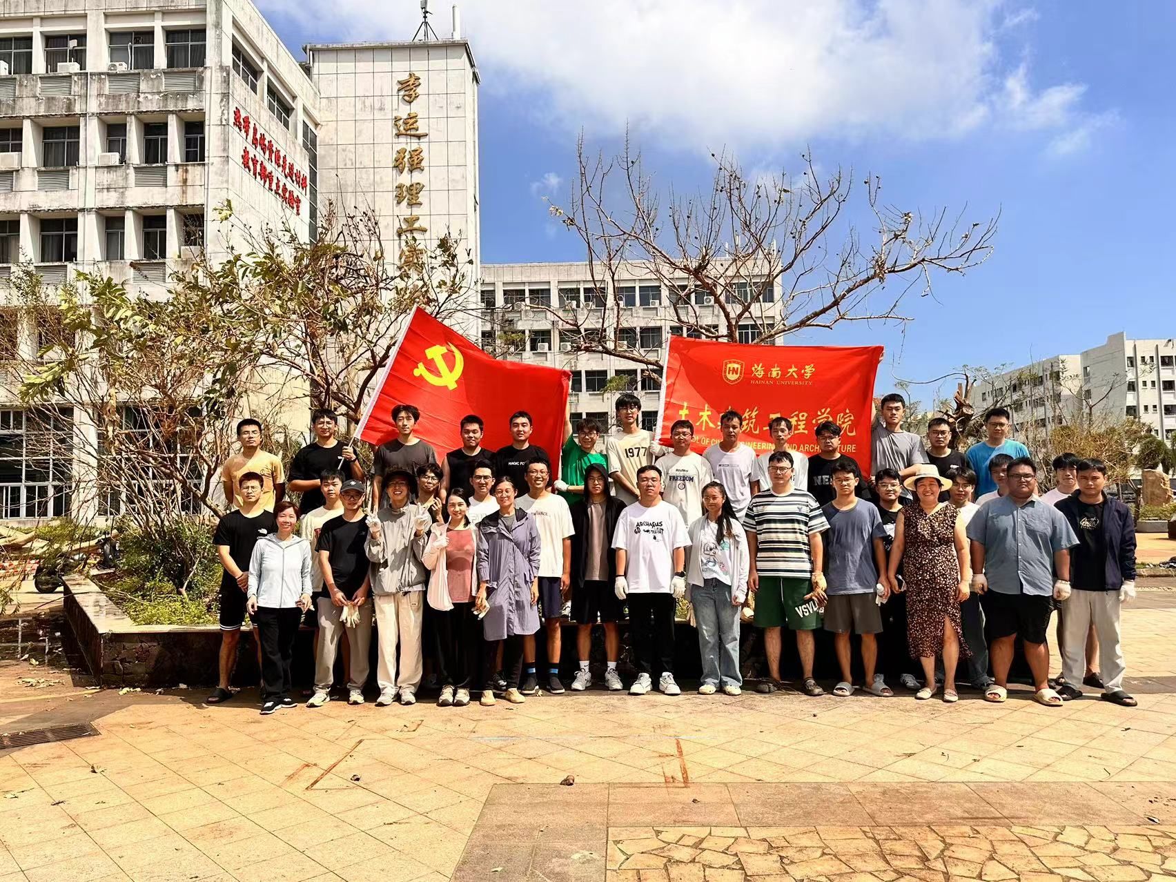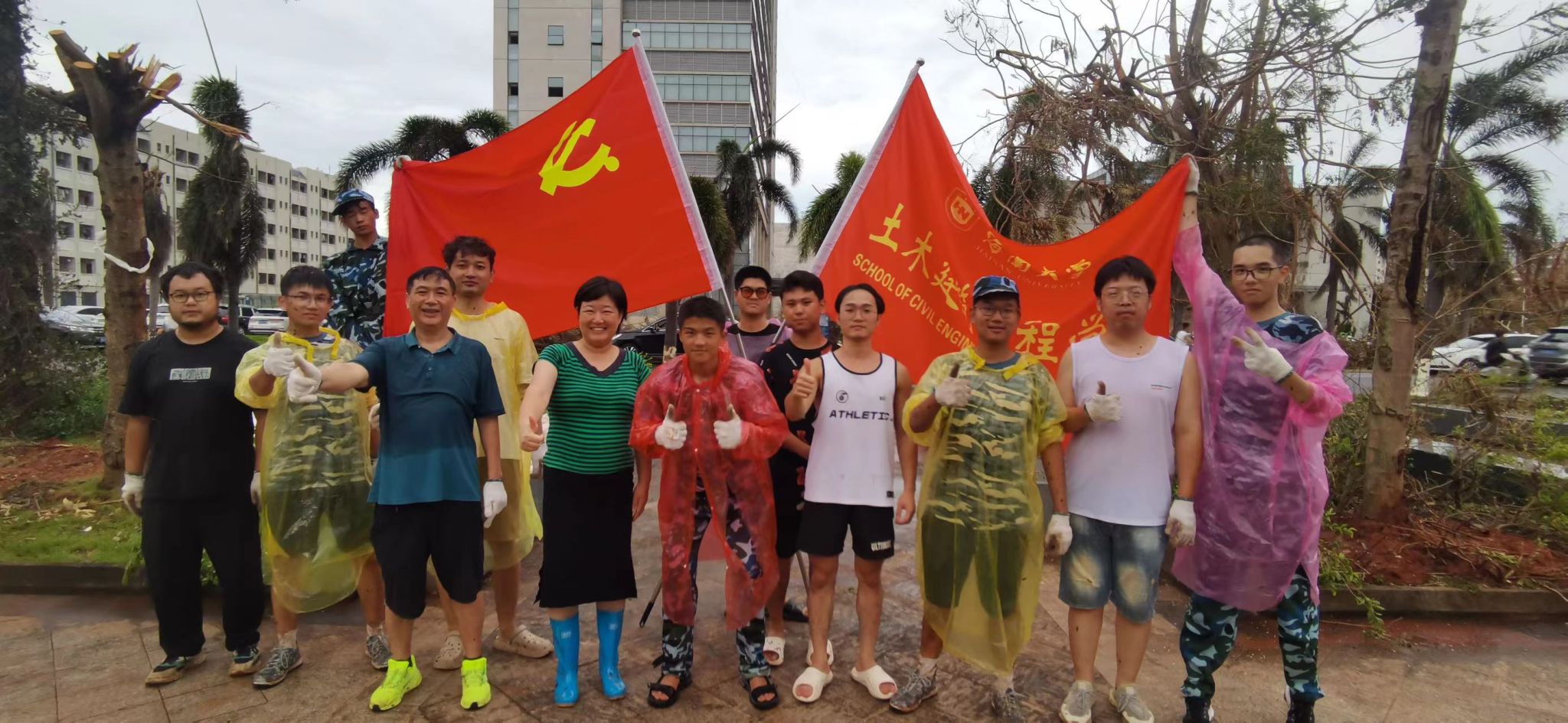 9月13日上午,学院党委集结了30多名研究生加入救灾队伍。