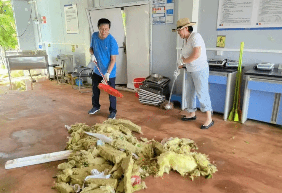 经过近两个多小时的努力,已对受损实验室进行了初步清理,结构实验室各类设备已经进行了覆盖。