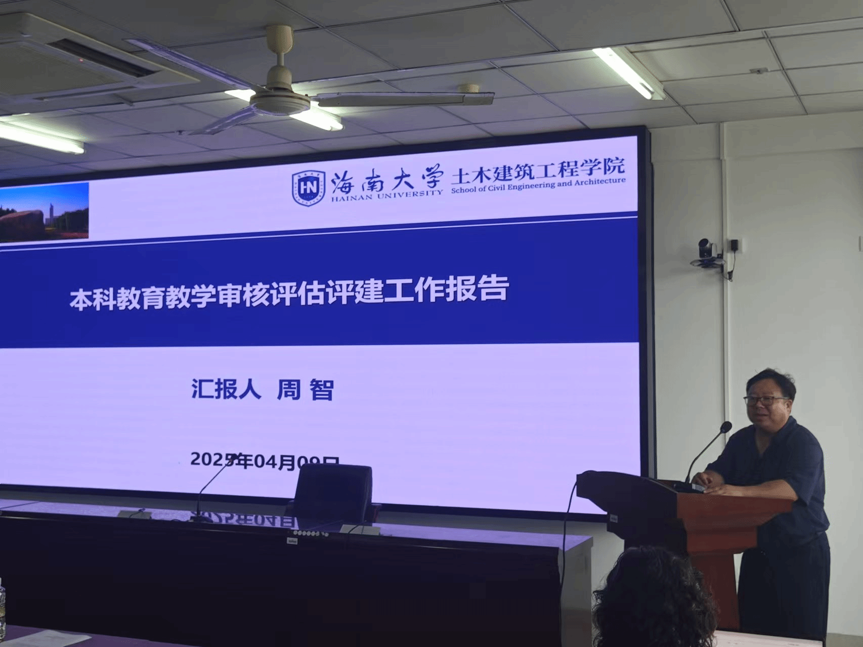 会上,周智院长首先作学院院情与专业办学特色专题报告。他系统介绍了学院本科人才培养工作基本思路、本科教育教学建设成效、存在问题及原因分析、工作特色与亮点、持续改进措施等,并重点阐述了土木工程、建筑学专业的办学特色与优势、问题分析与应对方案。他强调,学院始终坚持以学生为中心,科教融汇、产教融合、职普融通,充分发挥热带海洋土木工程的独特优势,以培养学生的“综合化、地域化、应用型”建筑设计能力为核心理念,致力于培养人格健全、有社会责任感、基础宽厚、专业精通、创新精神、实践能力、国际视野的高素质工程人才。