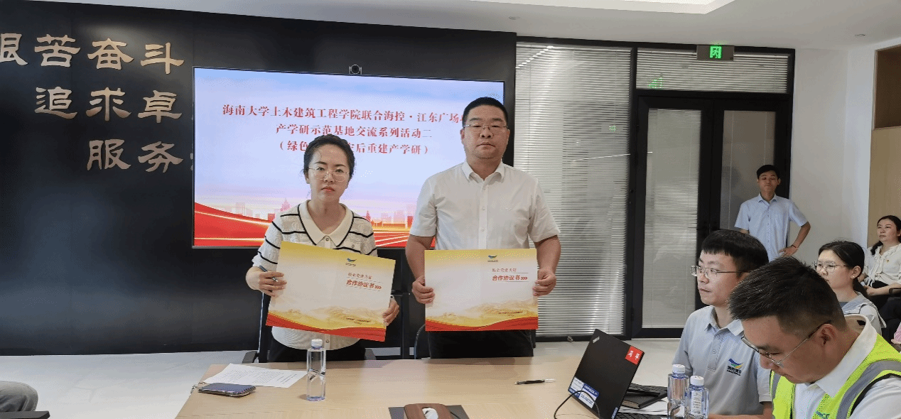 李艳书记表示:“此次活动是我们第二次走进海控•江东广场项目,是‘党建+专业教育’融合的一次创新尝试。通过校企协同,我们不仅让学生‘看见’行业前沿,更激励他们以科技报国之心投身国家建设。”海控城市运营集团相关负责人指出,校企共建将加速科研成果转化,为海南打造“零碳建筑示范区”注入新动能。