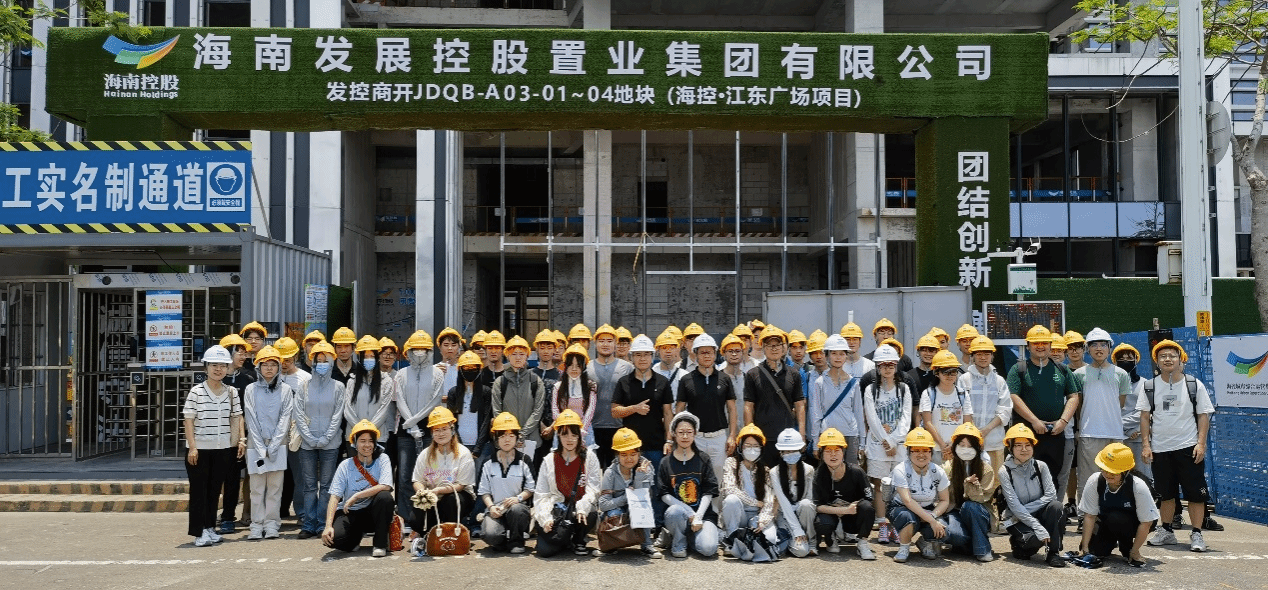 海口,2025年5月9日上午——为深化产教融合、践行实践育人理念,350vip8888新葡的京集团建筑系2021级66名师生在夏桂平、齐飞两位老师的带领下,走进江东新区海控•江东广场项目工地,开展了一场以“绿色建筑实践与台风灾后重建经验”为主题的现场观摩学习活动。此次活动通过实地研学、校企互动和党建引领等形式,助力学生提升专业素养,赋能自贸港绿色低碳建筑高质量发展。