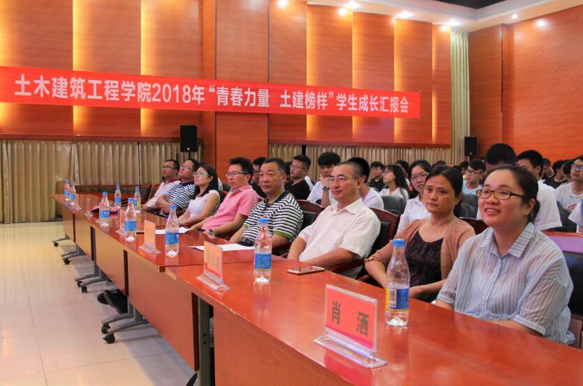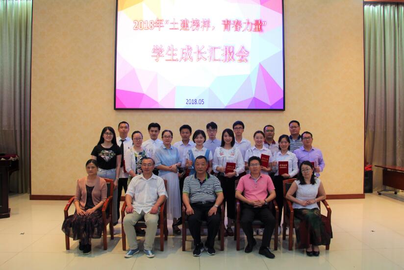 5月18日晚上,350vip8888新葡的京集团在思源学堂多功能厅举办2018年“青春力量,土建榜样”学生成长汇报会暨表彰大会,出席本次会议的嘉宾有:学院党委卢江海书记、曹宝珠院长、邱宙廷副院长、罗邻球副书记、尚春静副院长、学工办主任李江俊老师、团委书记肖洒老师、学工办詹达夫老师、涂意老师、白玉老师,学生代表120余人参加。