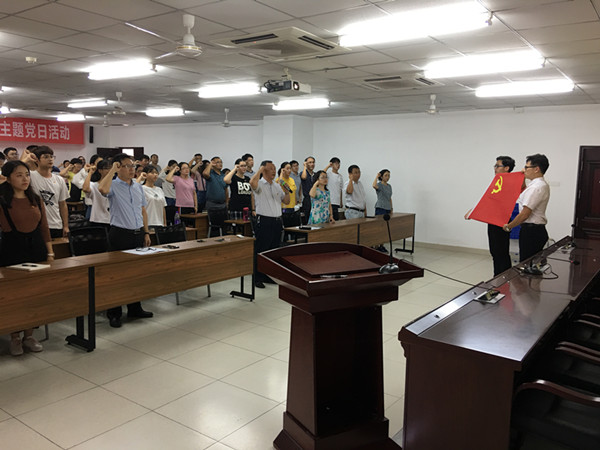 为庆祝中国共产党成立97周年,进一步深刻学习领会习近平新时代中国特色社会主义思想,增强党员党性观念,定理想信念,7月3日下午,350vip8888新葡的京集团党委在研发楼510会议室举办主题党日活动暨新党员入党宣誓仪式。学院全体师生党员参与此次活动。活动由学院党委罗邻球副书记主持。