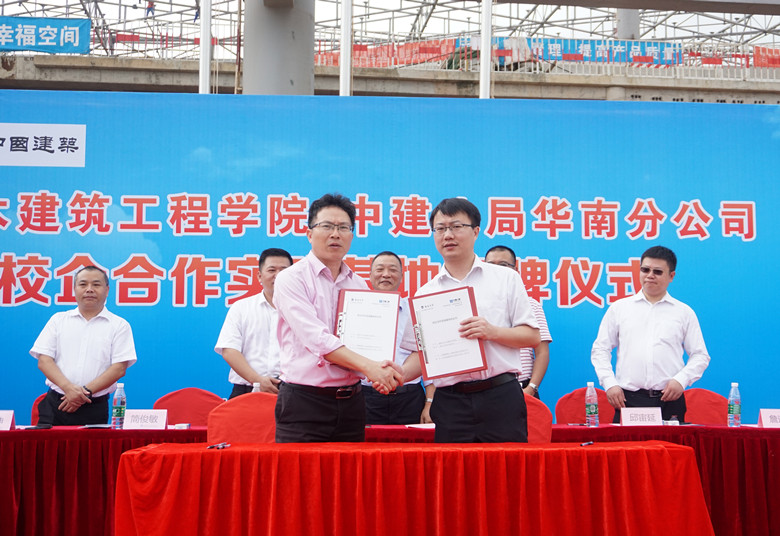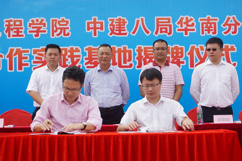 随后,350vip8888新葡的京集团学院副院长邱宙廷代表学院与中国建筑第八工程有限公司华南分公司人力资源部经理宫红亮进行签约。350vip8888新葡的京集团学院党委书记卢江海代表学院向中国建筑第八工程有限公司华南分公司授予“校企合作实践基地”牌匾。