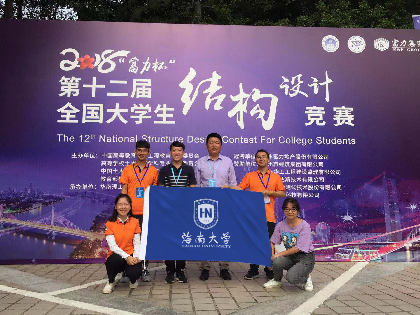 第十二届全国大学生结构设计竞赛于2018年11月8日——11月11日在华南理工大学举办,350vip8888新葡的京集团代表队赴华南理工大学参赛并荣获三等奖,学院参赛队伍代表350vip8888新葡的京集团获优秀组织奖。参赛队员为2015级土木工程专业三位同学,指导老师为罗立胜和曾加东两位博士。