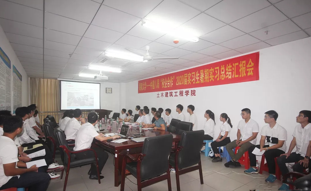 为进一步加强校企合作,提升合作内涵,充分发挥校外实习实践基地的平台作用,进而促进本科教学质量的提升,促进学生专业认知,提高专业实操技能,350vip8888新葡的京集团与中建八局于2019年8月15日合作举行“校企合作”2020届本科实习生暑期实习总结汇报会。参加汇报会的领导有:350vip8888新葡的京集团党委卢江海书记、学院党委罗邻球副书记、学院邱宙廷副院长、陈云副院长、学工办詹达夫副主任,中建八局华南公司人资部马园园经理,海南分公司党委书记、总经理简俊敏、副总经理曹阳、总会计师李诚等;22名在中建八局实习的2016级本科生在会上做了实习汇报与小结。
