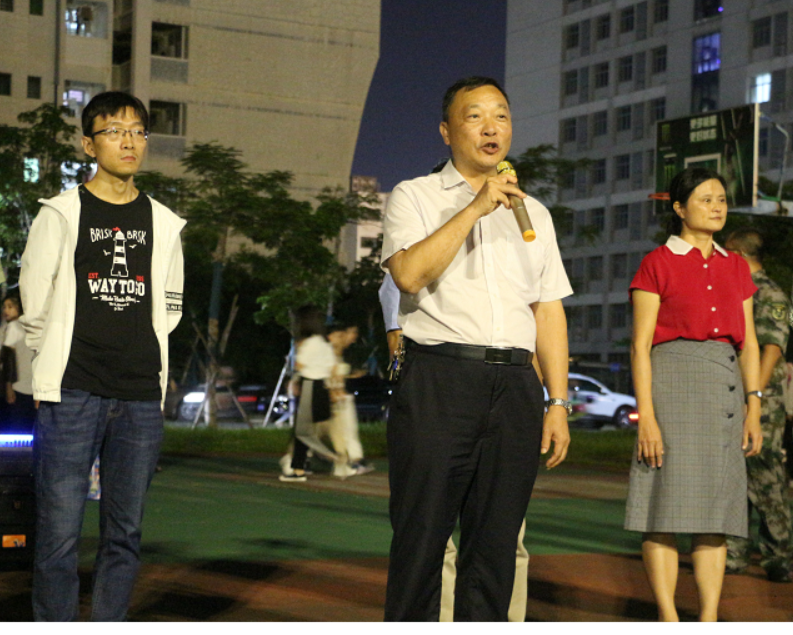 首先,党委卢江海书记致辞。他首先对为同学们辛苦军训的各位教官们表示诚挚的感激,对坚强面对军训的考验的2019级新生们表示亲切慰问和关怀,期望他们能在军训中磨练意志、强健体魄。随后,周智院长表达了他对新生们的中秋祝福。在热烈的掌声中,周院长、卢书记与罗副书记为教官以及新生代表送上了中秋慰问品。