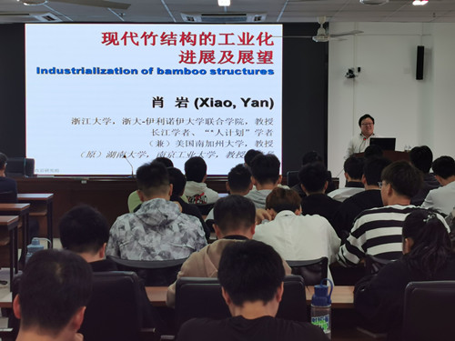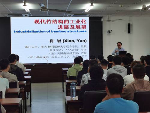 2020年12月11(周五)上午10:30-11:40点,浙江大学-伊利诺伊大学厄巴纳香槟校区联合学院(ZJUI)能源环境与可持续系统科学系主任,国家计划专家肖岩博士应新葡京官网周智院长邀请,在新葡京官网510报告厅做了题目为《现代竹结构的工业化进展及展望》的学术报告。报告会由周智院长主持,新葡京官网研究生和有兴趣的老师、本科生近80余人参加了此次学术报告会。