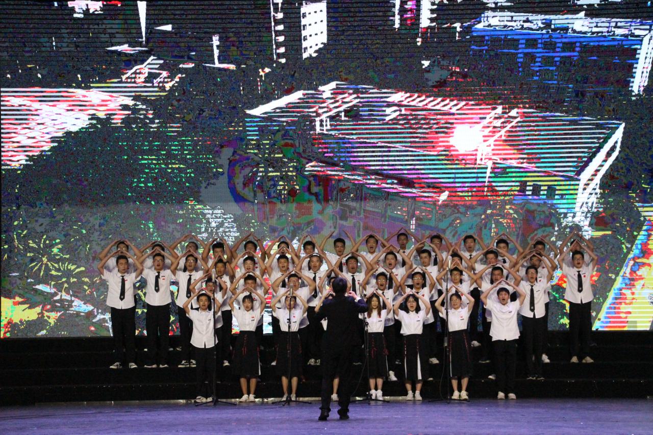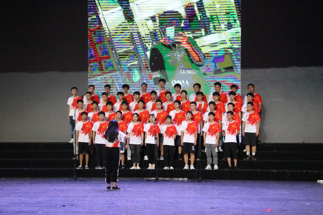 同学们深情演绎一首首红歌,展示了土建学子的风采。中建一局集团第一建筑有限公司南方分公司代表们头戴安全帽,身着整齐的建筑工服,用歌曲《我们走在大路上》和原创歌曲《中国建筑之歌》展现了中国建筑行业人员积极向上的精神风貌,唱出了对祖国、对党无限的热爱之情,也唱出了建筑人建设祖国、贡献青春的使命和担当。