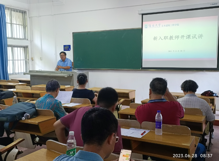 2023年6月28日上午,土木工程学院在2号教学楼101教室和102教室进行了新入职教师开课试讲工作。试讲工作由薛春霞副院长主持,周智院长针对新葡京官网教学水平提高、新入职教师教学注意事项等做了指示,田元福副院长、海工系主任任年鑫、建筑系主任蒋伊琳及课程组责任人和学院督导参加了试讲评审工作,王珍珍等10位新入职教师进行了开课试讲。