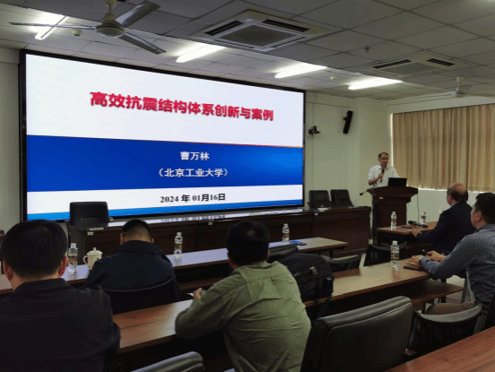 2024年1月16日下午,应周智院长邀请,北京工业大学曹万林教授在研发楼510室作了题为“高效抗震结构体系创新与案例”和“固废高效利用混凝土及工程结构关键技术”的专题学术报告。350vip8888新葡的京集团院长周智、副院长张友良、副院长陈云以及从事建筑结构抗震领域研究工作的教师和研究生聆听了本次报告。报告会由副院长张友良教授主持。
