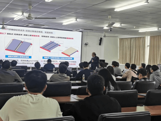 报告会上,曹万林教授介绍了自己科研团队开展的系统性研究工作和取得的创新性成果,包括:1.研发了多种大型复杂高层建筑组合结构高效抗震体系,解决大型复杂高层结构受力复杂的挑战性技术难题;2.研发了装配式轻钢组合结构和自攻钉集块连接混凝土墙板体系,满足装配式低多层结构技术的发展需求;3. 研发了多源固废再生混凝土关键技术及其工程结构设计理论,解决大量工业和建筑固废给国民经济持续发展带来的挑战难题,为重大工程应用提供关键技术支撑。相关研究工作形成多项技术标准并推广工程应用。同时,曹万林教授就教学相长、育人育才和服务社会分享了自己的思考感悟,并与师生进行了互动交流。