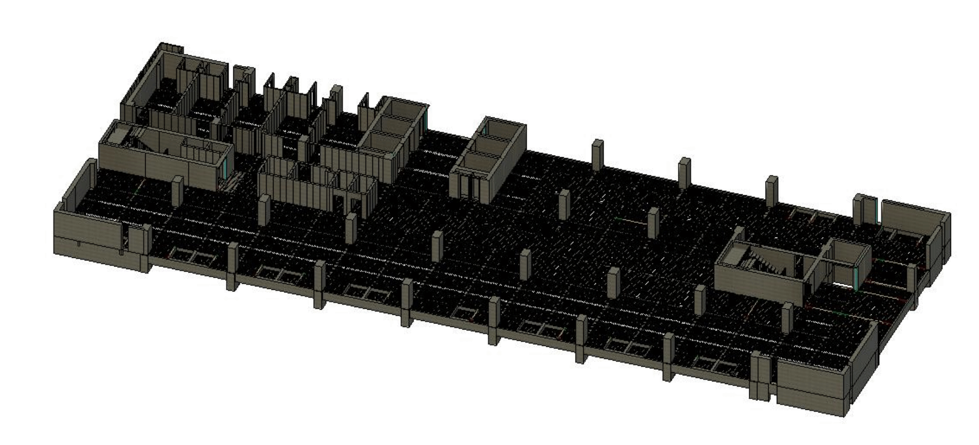 这届大赛A组赛题为装配整体式医疗建筑,建筑面积达55246.6平方米,高度达79.30米,在实际项目设计中属于中高难度。要求采用BIM技术对门急诊住院综合楼进行结构建模、计算分析、深化设计以及生成施工图,并完成思考题。为了充分发挥校企合作的优势,学院还与海南海大工程设计研究院开展合作,邀请设计院总工黄利参与竞赛,指导同学们运用专业知识解决了项目设计中的许多难点。难点之一就是结构模型的建立,特别是阶梯式报告厅和局部转换层的建模,并根据计算结果对模型不断进行优化和调整,最终解决了重点设防类医疗建筑的超筋超限问题,使得结构整体控制指标满足设计规范要求。