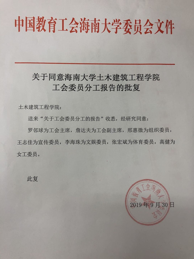 中国教育工会350vip8888新葡的京集团委员会关于350vip8888新葡的京集团工会委员分工的批复