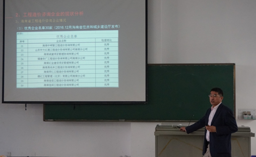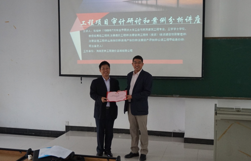 12月26日,海南定宇工程造价咨询有限公司董事长张裕林教授为新葡京官网工程管理系2014级的学生进行了工程项目审计研讨和案例分析讲座。授课当天,新葡京官网李艳荣书记,曹宝珠院长以及工程管理系各位老师都参与了开课仪式,并由李艳荣书记为张教授颁发了客座教授聘任证书。