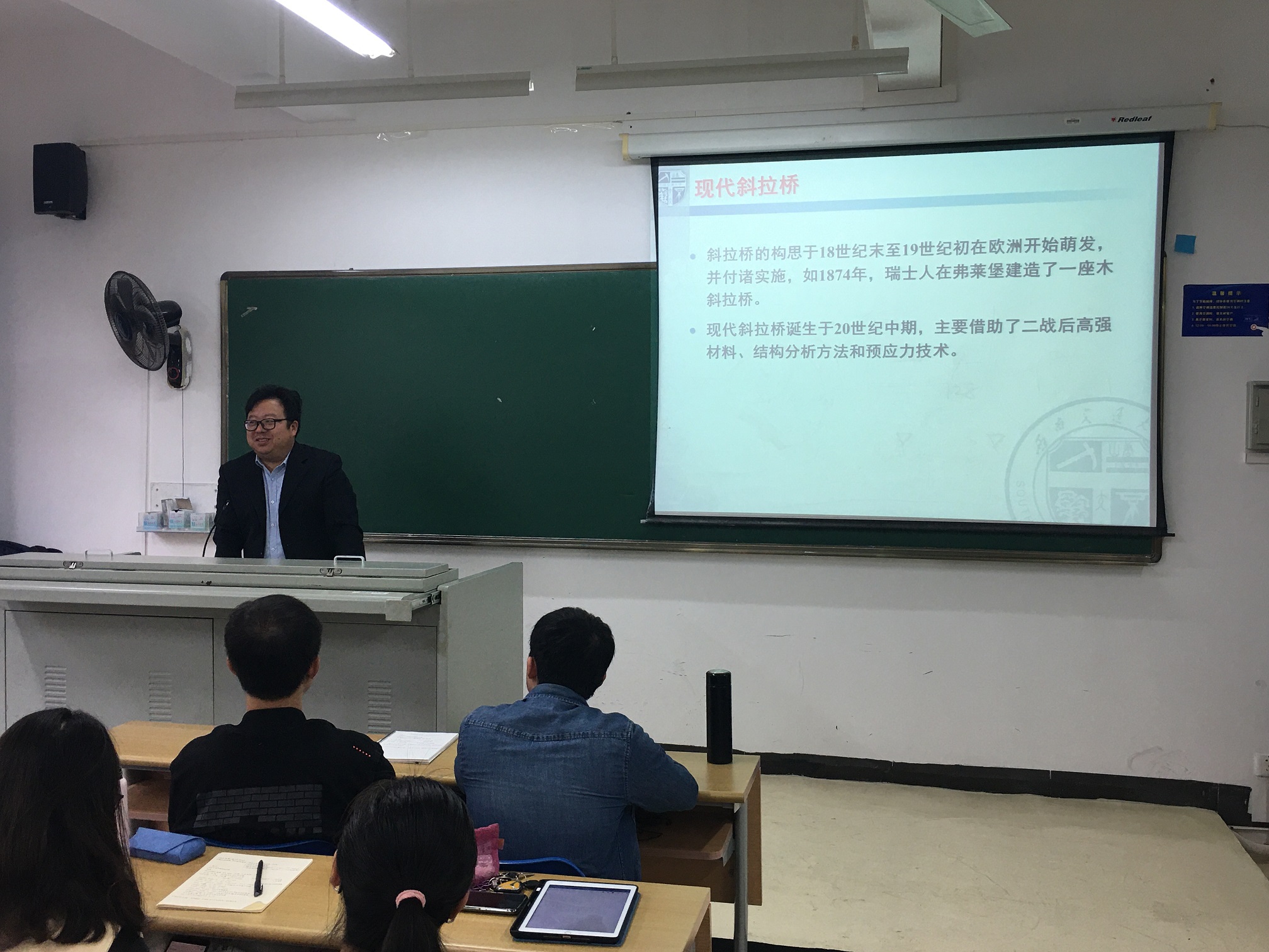 李教授以“大跨度桥梁工程及抗风设计”为题,于2019年12月29日至2019年12月31日期间,为土木工程专业2017级学生授课。李教授为学生讲述了近年来国内外大跨度桥梁建造技术发展及最新前沿、大跨度桥梁发展面临的关键性问题、大跨度桥梁抗风设计等内容,鼓励同学们努力学习专业知识,向更高的学位进发。