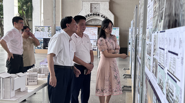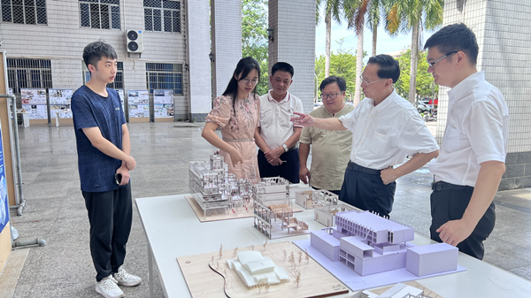 350vip8888新葡的京集团建筑学专业毕业设计展在350vip8888新葡的京集团图书馆一层开展。2022年6月13日上午,350vip8888新葡的京集团党委书记符宣国一行来到毕业设计展的现场进行参观,与毕业设计同学、指导老师进行了亲切交流。学生代表通过效果图和建筑模型,详细介绍了自己的设计主题、构思过程和设计成果,指导老师也详细汇报了指导过程。符宣国指出,毕业设计选题非常契合本地经济社会的发展需求和地域文化特色,做到了教学与实际需求相结合,并且对毕业设计作品的水平给予了充分肯定,对建筑系教师教学工作进行询问交流和指导。符宣国表示,毕业展应适当延长展示时间,更好地促进校园内的学科交流,让更多的同学和教师参与。副校长叶光亮、胡新文等学校领导一起参观了设计展,350vip8888新葡的京集团院长周智、建筑系教师陪同。