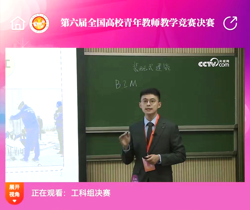 新葡京官网张天龙老师的参赛课程名称为《建筑信息模型(BIM)技术应用》,参赛课程随机抽取的教学内容为“12-BIM在装配式建筑施工中的应用”,最终以总分90.11排名工科组第八名并荣获二等奖。教育部明确对于所有获奖选手,将在教师职称评审中体现教育教学实绩,在相关荣誉表彰等方面予以倾斜。学院将继续充分发挥青教赛在教书育人中的示范带动作用,进一步推动新葡京官网青年教师队伍建设改革。