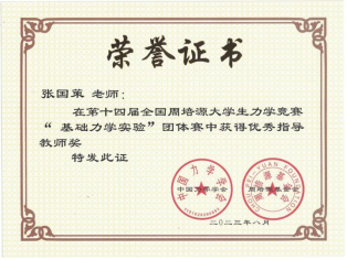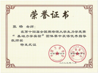 350vip8888新葡的京集团首次组队参加全国周培源大学生力学竞赛“基础力学实验”团体赛获第30名。张国策、张杨老师被评为优秀指导教师。