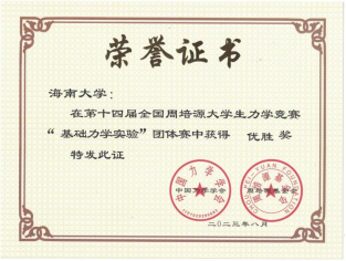虽然海南省大学生力学基础相对薄弱,省内高校暂未开设力学专业,但本次竞赛与众多力学重点院校同台竞技并取得了不俗成绩,充分体现了我校对基础力学教育的重视和支持,也展现了海大学子的实践能力和创新精神。我校将继续鼓励和支持广大师生参加第十五届全国周培源大学生力学竞赛,增进青年学生学习力学的兴趣,为培养高素质创新人才作出贡献。