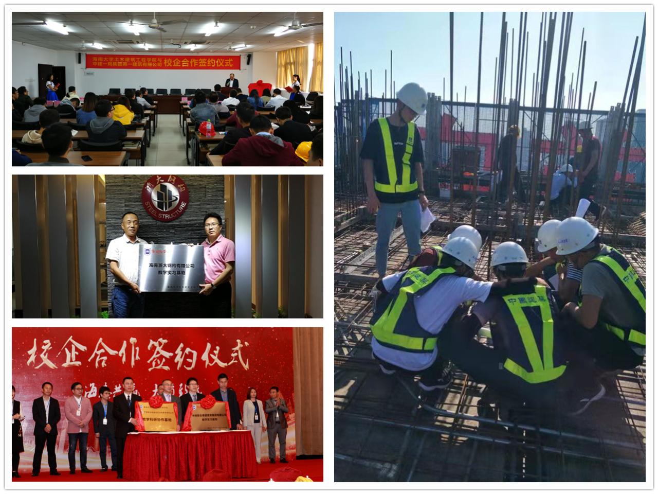学院领导班子成员,多次召开学院本科教学会议,创新实践教学新途径,要求所有课程实习、课程论文(设计)和毕业论文(设计)为主的实践教学,要以经济发展建设为导向,服务社会与地方为中心,对接企业需求为基础,提升学生动手能力,以点辐射周围,全方位提高学生实践能力,真正做到“砼”心。自2017年以来,在学院党委卢江海书记、邱宙廷副院长带领下,以央企、国企为“体”,实力民企为“翼”,打造院企合作的实践教学体系。相继与中国建筑集团、中铁建、中交、中船重工、雅居乐、碧桂园、腾越、浙江钢构、联合泰盛等40余家企业,签署合作协议,共同打造“教学实践型”、“ 教学实践+研究实践型”的实践教学基地。