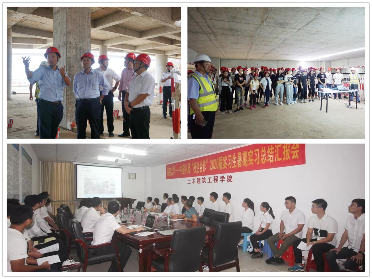 学院每年都会结合本科教学需要,根据学生的兴趣、特长和发展方向,组织各系学生利用暑假时间,到合作企业的各个项目开展相应的生产实习、教学实习等活动。每年根据教学计划安排学生到中建一局、中建二局、中建三局、中建五局、中建六局、中建八局、中建新疆、中铁建、中国交建、广东腾越建筑、碧桂园地产等实践基地进行认识实习、生产实习和毕业实习。实习岗涵盖办公室、工程管理、施工现场等各个环节。同时,实习单位针对实习学生,一对一配对项目导师 ,帮助实习生快速成长。经过教学理论+案例课解析后,学生们利用暑期在企业接受职业、工作技能训练,实现理论教学和实践教学交替,理论与实操互验互促。中建八局、中建五局等基地,实习教育期满,将实习讲评与总结会放在学院举行,让学院老师见证了实习生的快速成长。经调研,所有用人单位反馈,土建学院学生们在现场都有较高的积极性,动手能力和接受能力。