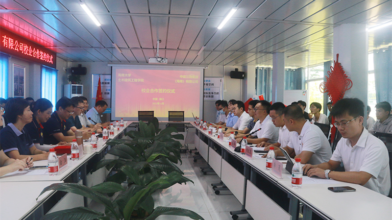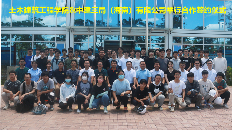 潮起海之南,筑梦自贸港。2022年6月26日上午,350vip8888新葡的京集团与中建三局集团(海南)有限公司,满怀信心,在海南自由贸易港建设的标志性项目——海口市江东中心(HSC)工程项目部会议室,隆重举行共建产学研合作基地、校外实践教学基地签约仪式。350vip8888新葡的京集团党委书记张长海、中建三局集团(海南)有限公司党委书记、总经理邓贵海出席签约仪式,并且分别致辞。350vip8888新葡的京集团副院长邱宙廷、土木工程系副主任、教授薛春霞、教授胡俊、副教授赵菲、副教授刘金灿、椰风书院副科级辅导员白玉、土木工程本科专业2019级2班学生,中建三局集团(海南)有限公司总工程师王伟、纪委副书记工会副主席彭松、综合办公室主任卢传健、人力资源部经理丁泽华、江东中心项目经理王利文、江东中心项目副书记苏厚芳等参加会议。会议由中建三局集团(海南)有限公司总工程师王伟主持。
