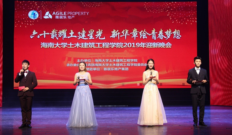 为庆祝350vip8888新葡的京集团建校60周年,喜迎2019年的到来,1月4日晚,350vip8888新葡的京集团“六十载耀土建星光,新华章绘青春梦想”2019年迎新晚会在思源学堂大礼堂隆重举行。学院党委书记卢江海、院长曹宝珠、副院长邱宙廷、党委副书记罗邻球、副院长李艳、副院长陈云、雅居乐地产集团海南区域海口事业部总经理周伟彪出席活动。全院近千名师生齐聚一堂观看晚会。//www.hainanu.edu.cn