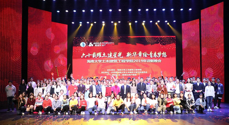 //www.hainanu.edu.cn 晚会最后,领导、嘉宾和全场观众一起合唱《我和我的祖国》,共同唱响对祖国的美好祝福!//www.hainanu.edu.cn 测绘建楼,土建学子耀星光;再建新高,土建学子谱华章。学院2019年迎新晚会圆满落幕,晚会主题鲜明,积极向上,承载了土建学子对祖国、对学校、对学院的美好祝愿,表达了学院全体师生在新的一年里,不忘初心,砥砺前行,和祖国同奋进、同海大共成长的热情与激情。//www.hainanu.edu.cn