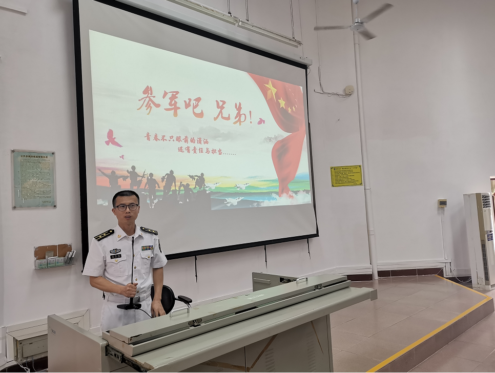 大会上特别邀请了美兰区武装部冯副部长,首先做了毕业生征兵动员宣讲。冯部长从个人的部队服役经历与体会出发,从国家的需要、强军的需要、个人发展的机遇与选择等角度做了征兵动员宣讲,建议、鼓励毕业生们选择部队,在保卫国家、报效人民的同时,实现个人的职业发展。宣讲结束后,美兰区武装部的工作人员向与会同学们发放了征兵工作宣传册。