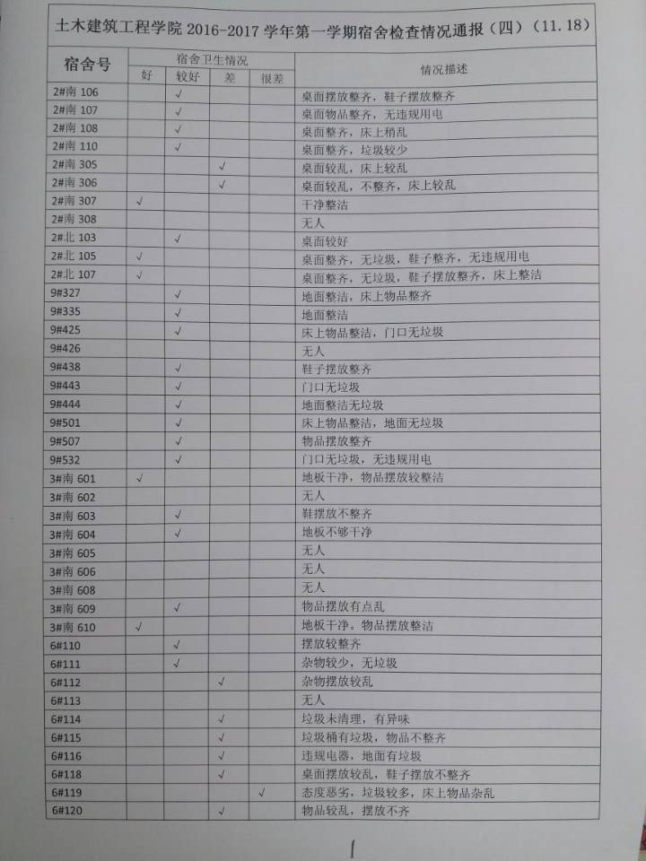 350vip8888新葡的京集团2016-2017学年第一学期宿舍检查情况通报(四)