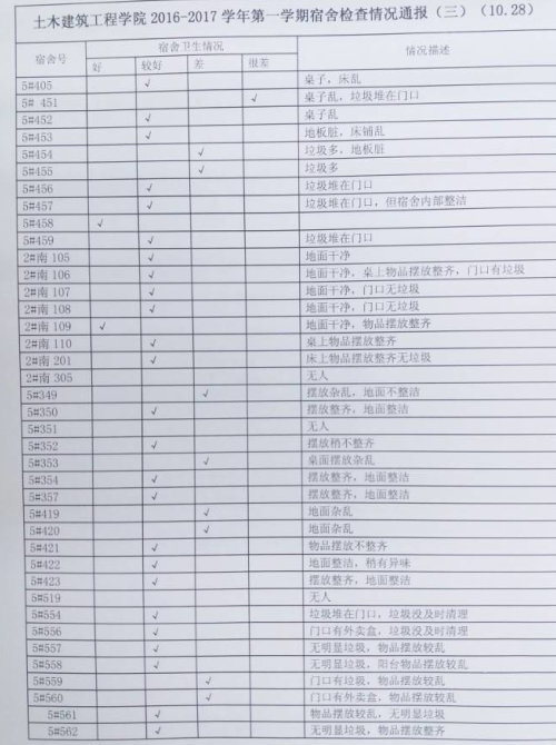 350vip8888新葡的京集团2016-2017学年第一学期宿舍检查情况通报(三)