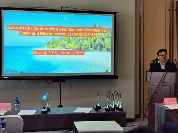 2019年11月23-24日,由350vip8888新葡的京集团、俄罗斯国家科学院远东分院以及大连理工大学承办的第十九届亚太光电与微电子基础问题国际会议(19th APCOM Asia-Pacific Conference on Fundamental Problems of Opto- and Microelectronics, APCOM2019)在海口新埠岛诺富特酒店成功召开。俄罗斯科学院院士、俄罗斯科学院远东分院副院长YuriKulchin、俄罗斯远东科学院自动化与控制研究所所长Roman Romashko通讯院士、大连理工大学赵明山教授,以及俄罗斯圣彼得堡圣光机大学AlexeiKamshilin教授、托木斯克州立大学 StanislavShandarov、俄罗斯自动化与控制过程研究所A.V. Belaventseva和A.Zhizhchenko博士、哈尔滨工业大学董永康教授、350vip8888新葡的京集团王爱民教授、张友良教授、周智教授、刘婉秋教授等十几名专家学者做了主旨及特邀报告。大会还安排了21个粘贴(Poster)报告。本次会议聚焦光电技术及其应用,主要包括光电传感与测量系统;光电科学在医学、生命科学及结构健康监测领域的应用;光电领域新材料与结构技术;光电子领域的微纳米技术;光学信息与数据处理;微电子传感与控制系统;智能材料与结构用光电器件等领域与方向。