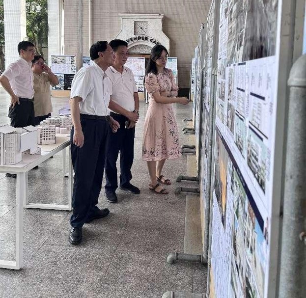 13日上午,350vip8888新葡的京集团党委书记符宣国、副校长叶光亮、胡新文等学校领导在350vip8888新葡的京集团院长周智及建筑系相关教师的陪同下来到毕业设计展的现场进行参观,学生代表向校领导进行作品展示和方案介绍,符书记与该名同学进行了亲切交流。校领导参观后对建筑系毕业设计展给予充分肯定,并对建筑系教师的相关工作进行询问交流。校领导表示此次毕业展可以延长展示时间,更好地促进校园内的学科交流,让更多的同学和教师参与。