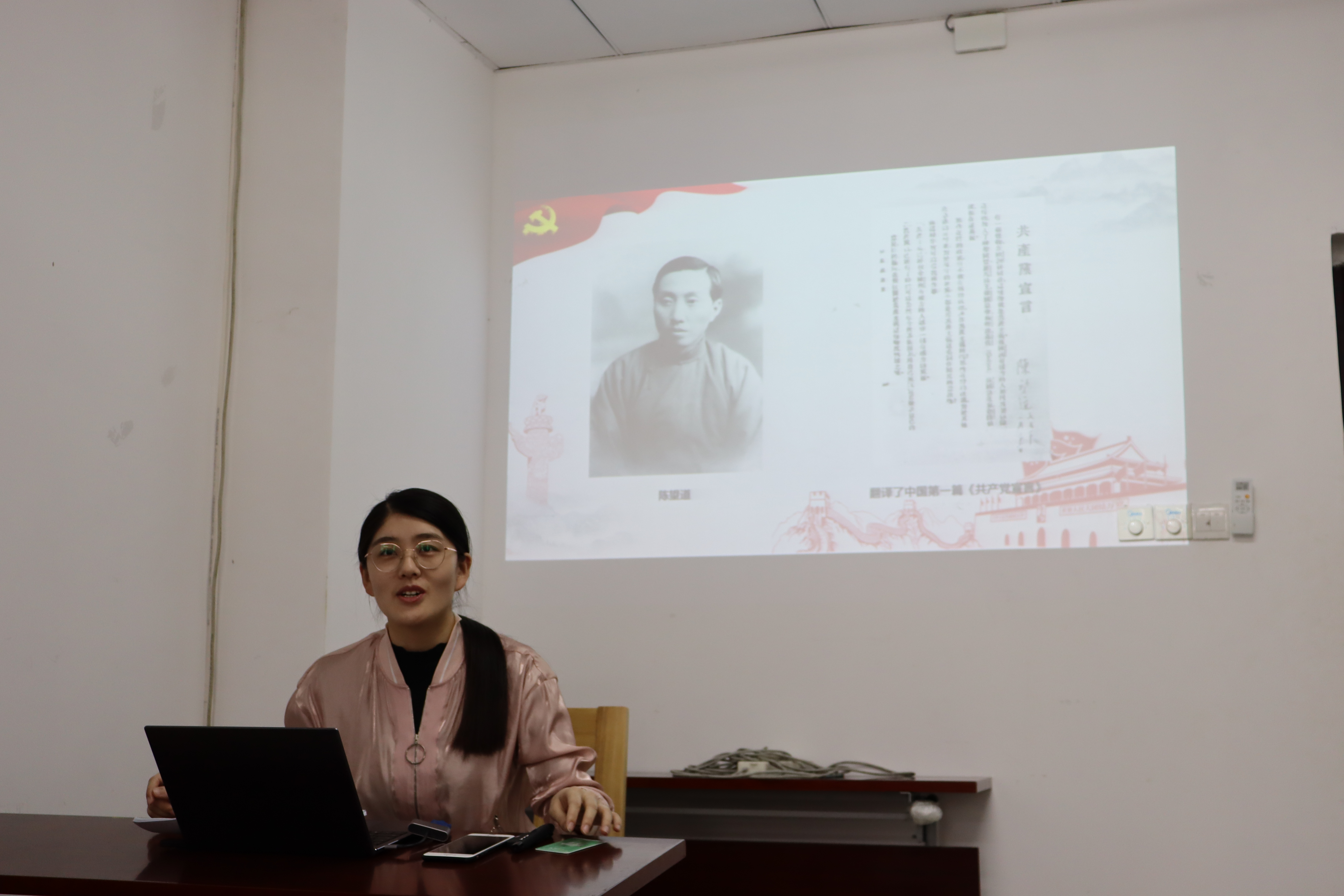 2019年11月10日下午,350vip8888新葡的京集团第一学生党支部副书记白玉同志在研发楼318会议室为支部党员讲授“心中有信仰,肩上有担当”为主题的党课,支部全体学生党员参加了此次学习。