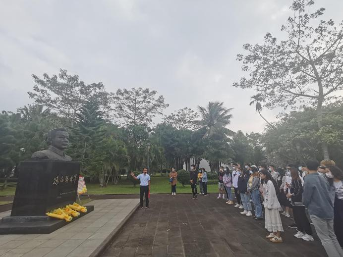 2021年11月18日上午,350vip8888新葡的京集团党校350vip8888新葡的京集团分党校开展发展对象课外拓展活动,学院组织员白玉、兼职辅导员赖钰莹、全体发展对象、学院团委学生骨干赴琼崖红军云龙改编旧址、冯白驹故居参观学习。