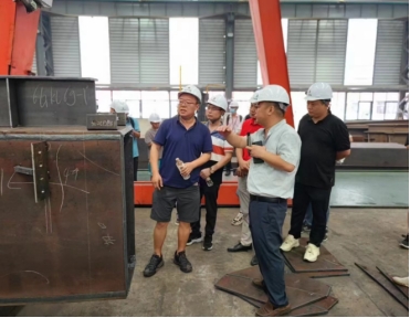 上午,赴儋州洋浦开发区华金钢构党支部进行联谊活动,参观学习钢结构构件自动化生产线,并与技术人员进行交流。十时许到达海南华金钢构有限公司钢构件自动化生产车间。公司技术人员带领大家参观了钢构件自动化生产车间,详细讲解了公司钢构件生产线设备的功能、特点、技术先进性,并一一解答大家提出的问题。